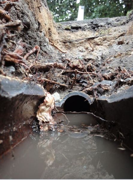 Sobald das Abwasser aus den Rohrverbindungen sickert, ist es nur noch eine Frage der Zeit bis die Wurzeln nahestehender Bäume einwachsen.