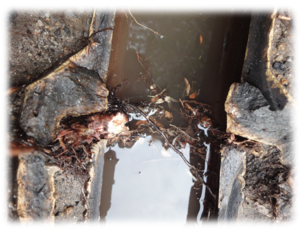 Durch den Wurzeleinwuchs wir das noch verbliebene Dichtungsmaterial weiter geschädigt.